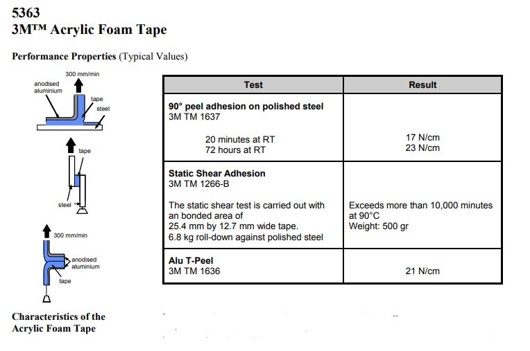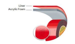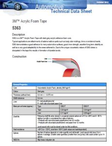 Il 3M™ 5363 è un nastro biadesivo da 0,40 mm con supporto in schiuma acrilica grigio scura e liner in carta bisiliconata bianca.
