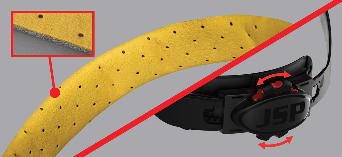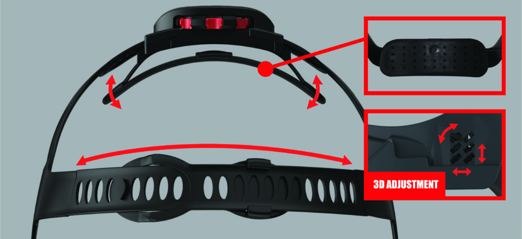 A large rear comfort pad forms to the wearer’s head shape, resting under the occipital bone and spreading the load for an exceptionally secure and comfortable fit for all users.
