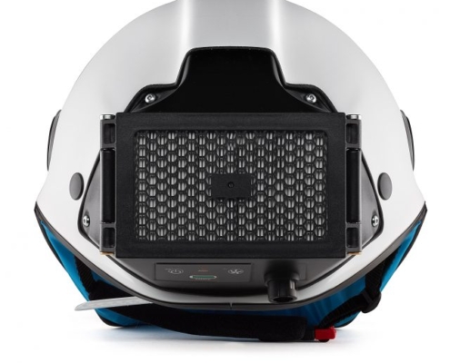 CENTRALINA DI VENTILAZIONE: Dotata di motore brushless silenzioso e di lunga durata e di un sistema che permette il monitoraggio del flusso minimo e dello stato di carica della batteria.