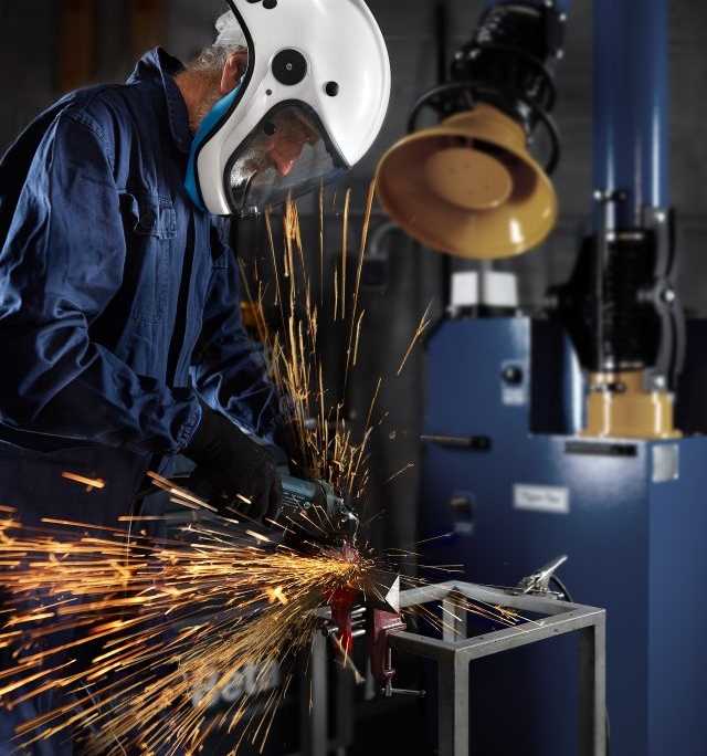 L’elettrorespiratore con casco è un dispositivo a ventilazione assistita in grado di fornire una protezione combinata di capo (EN397), viso e occhi (EN166) e vie respiratorie – da particelle – (EN12941).
