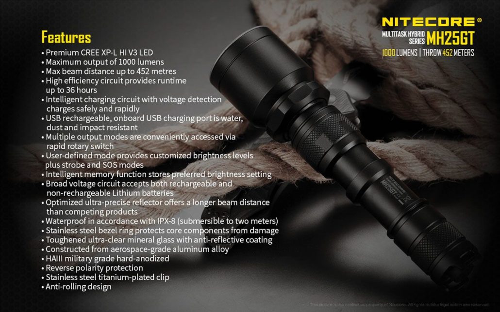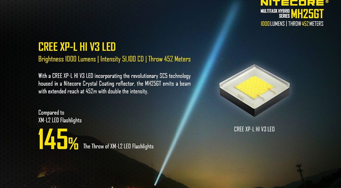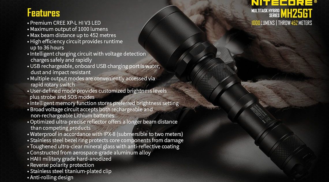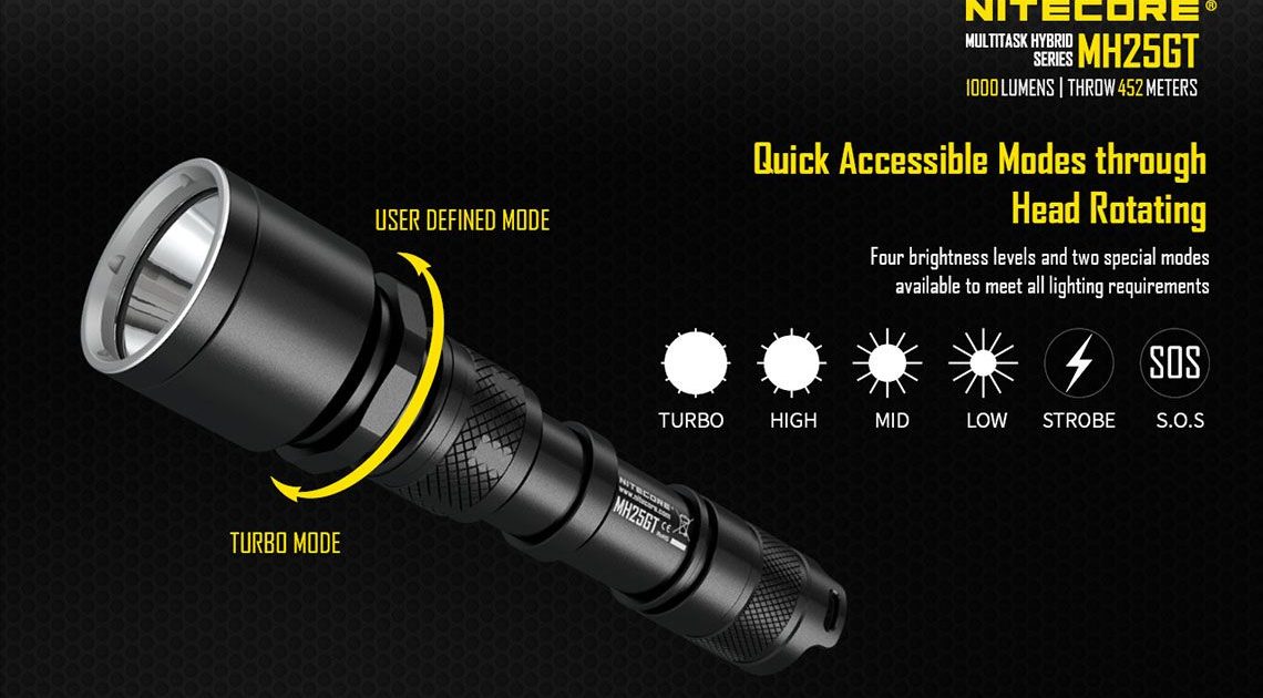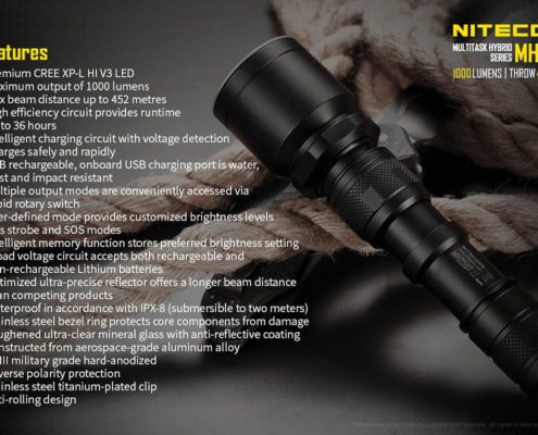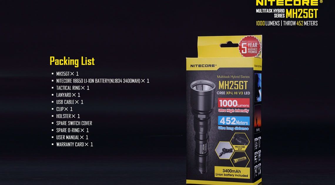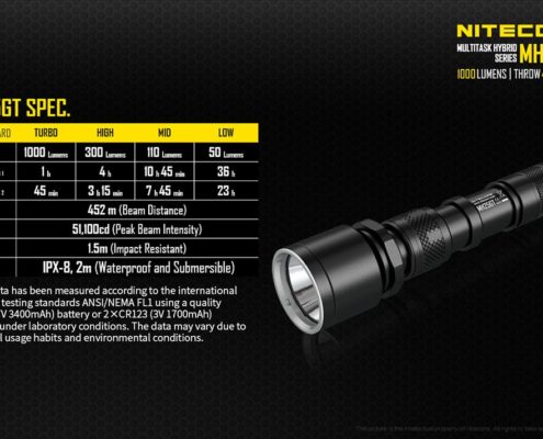 Nitecore – MH25GT – Ricaricabile USB – 1000 lumens e 452 metri – Torcia Led, in offerta promozionale a 62,00 euro ( iva esclusa )