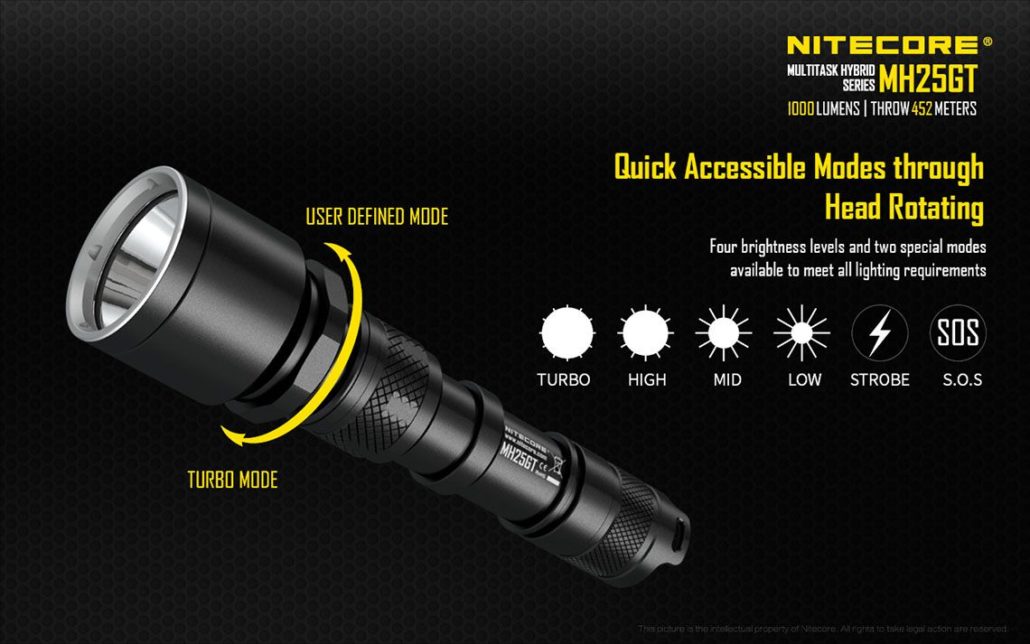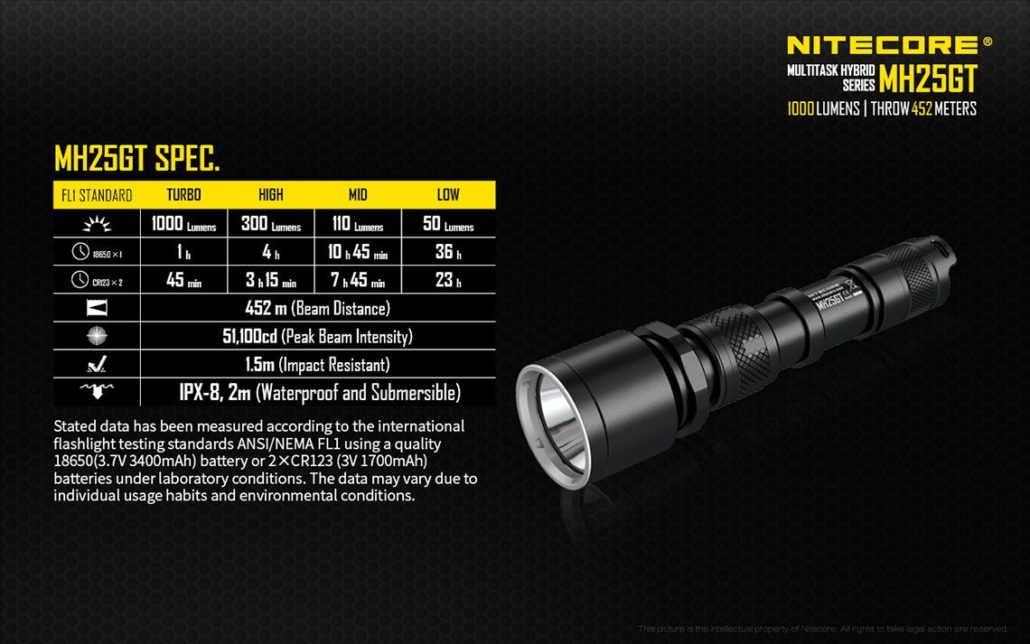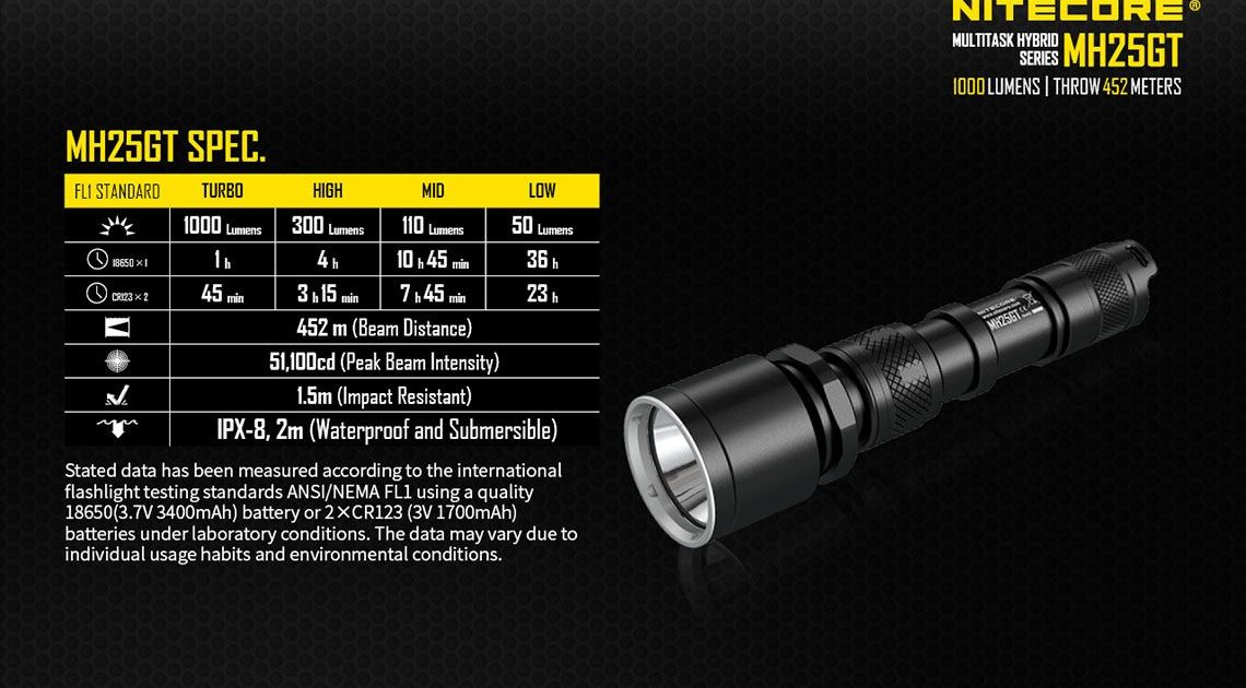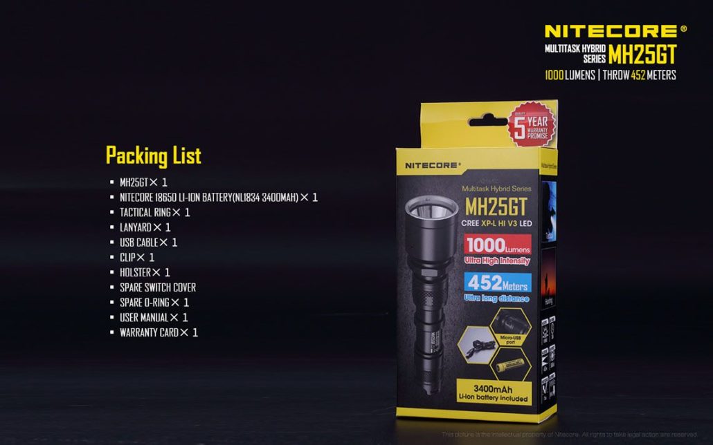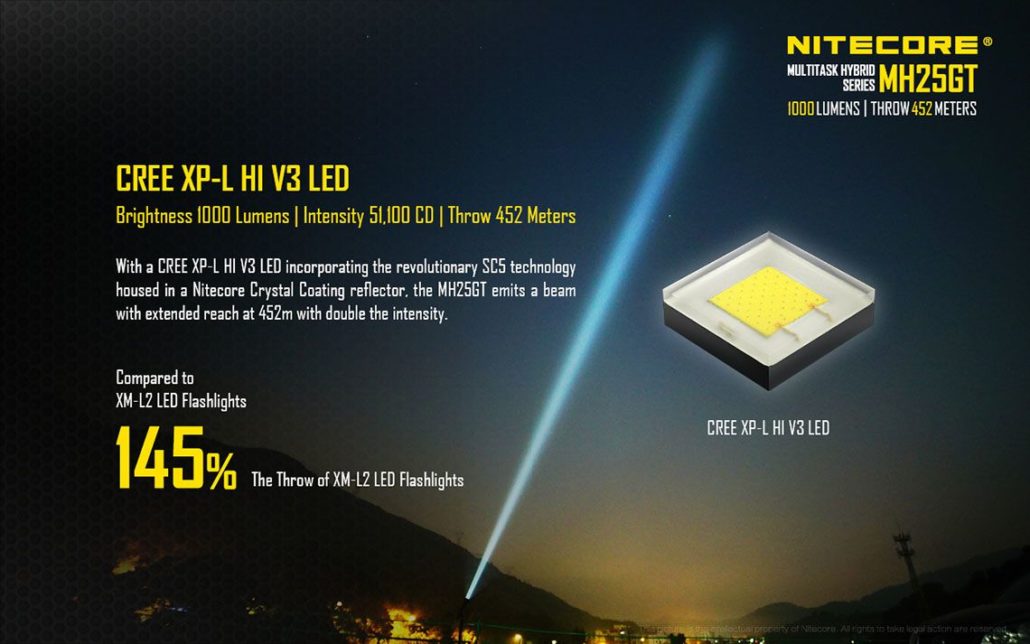 Nitecore – MH25GT – Ricaricabile USB – 1000 lumens e 452 metri – Torcia Led, in offerta promozionale a 62,00 euro ( iva esclusa )
